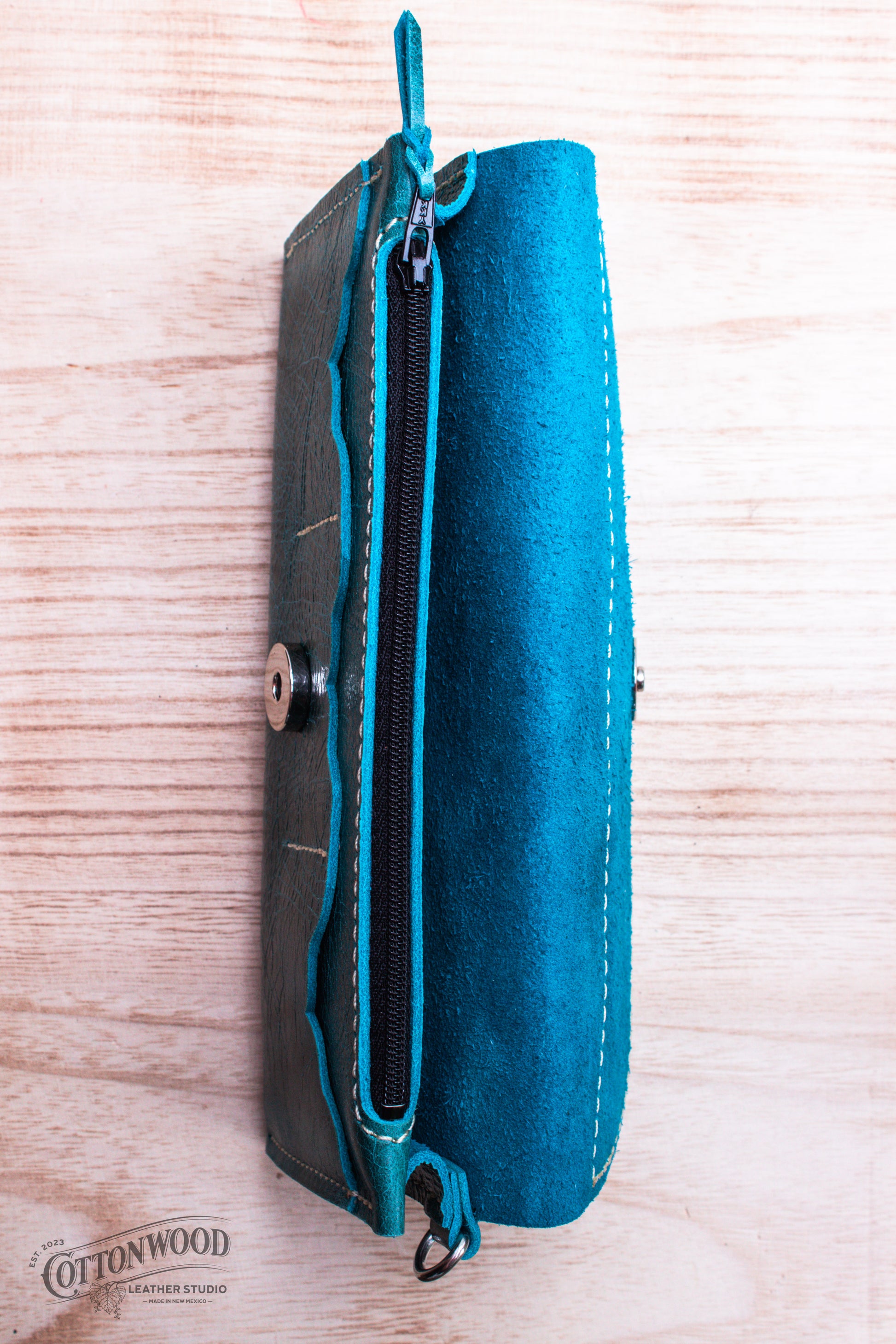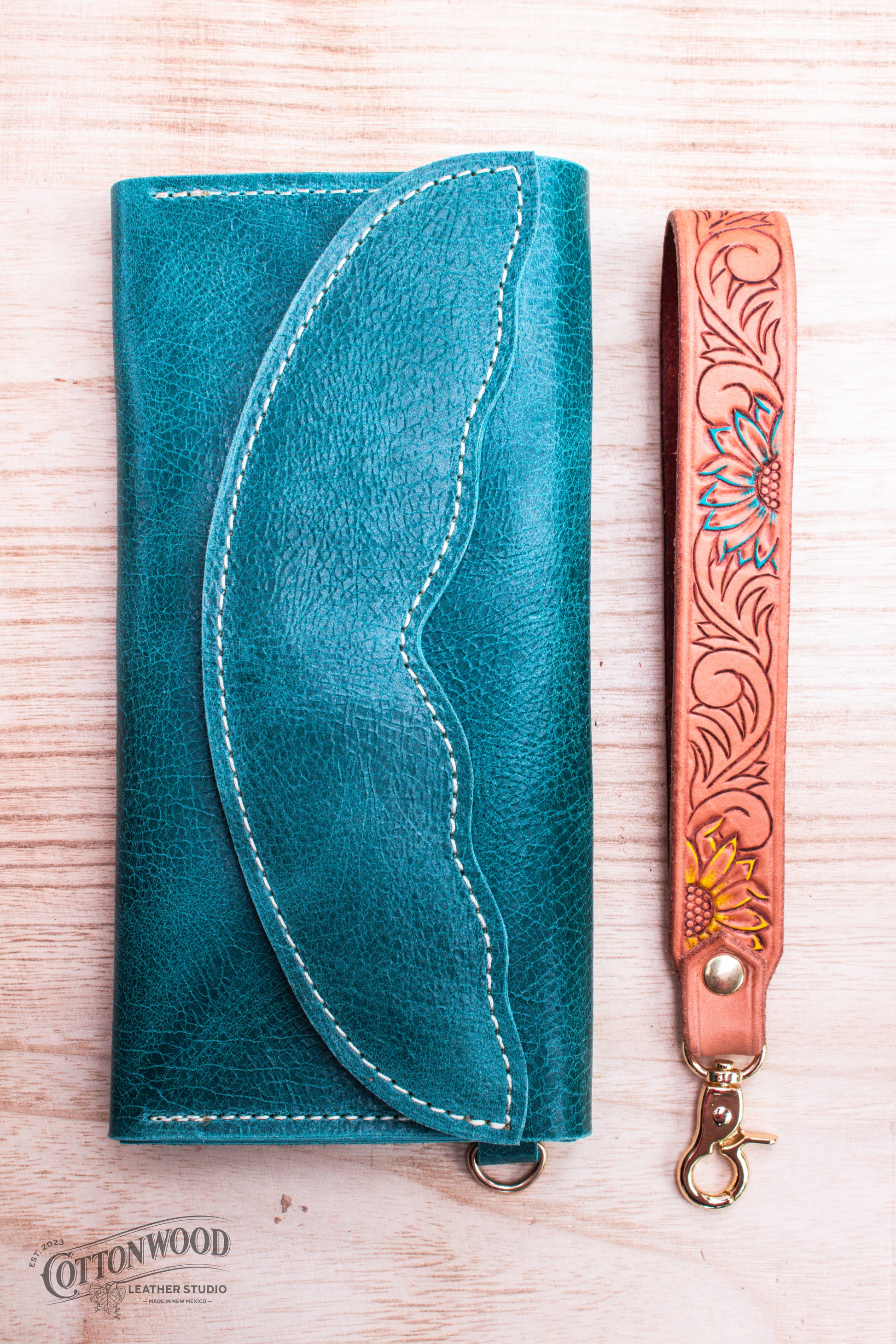 Turquoise Clutch Wallet with Floral Wrist Strap