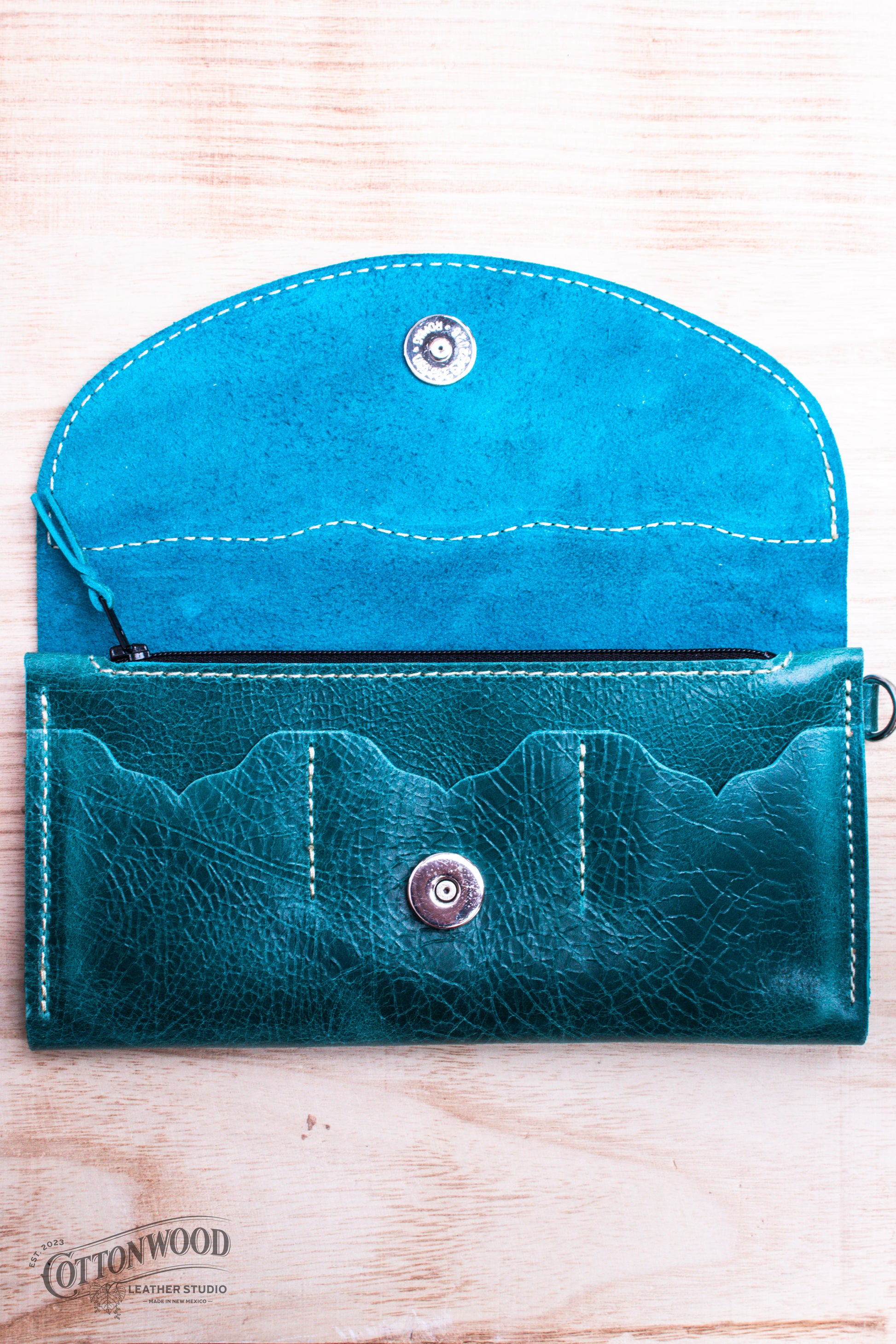 Turquoise Daisy Clutch Wallet with Wrist Strap