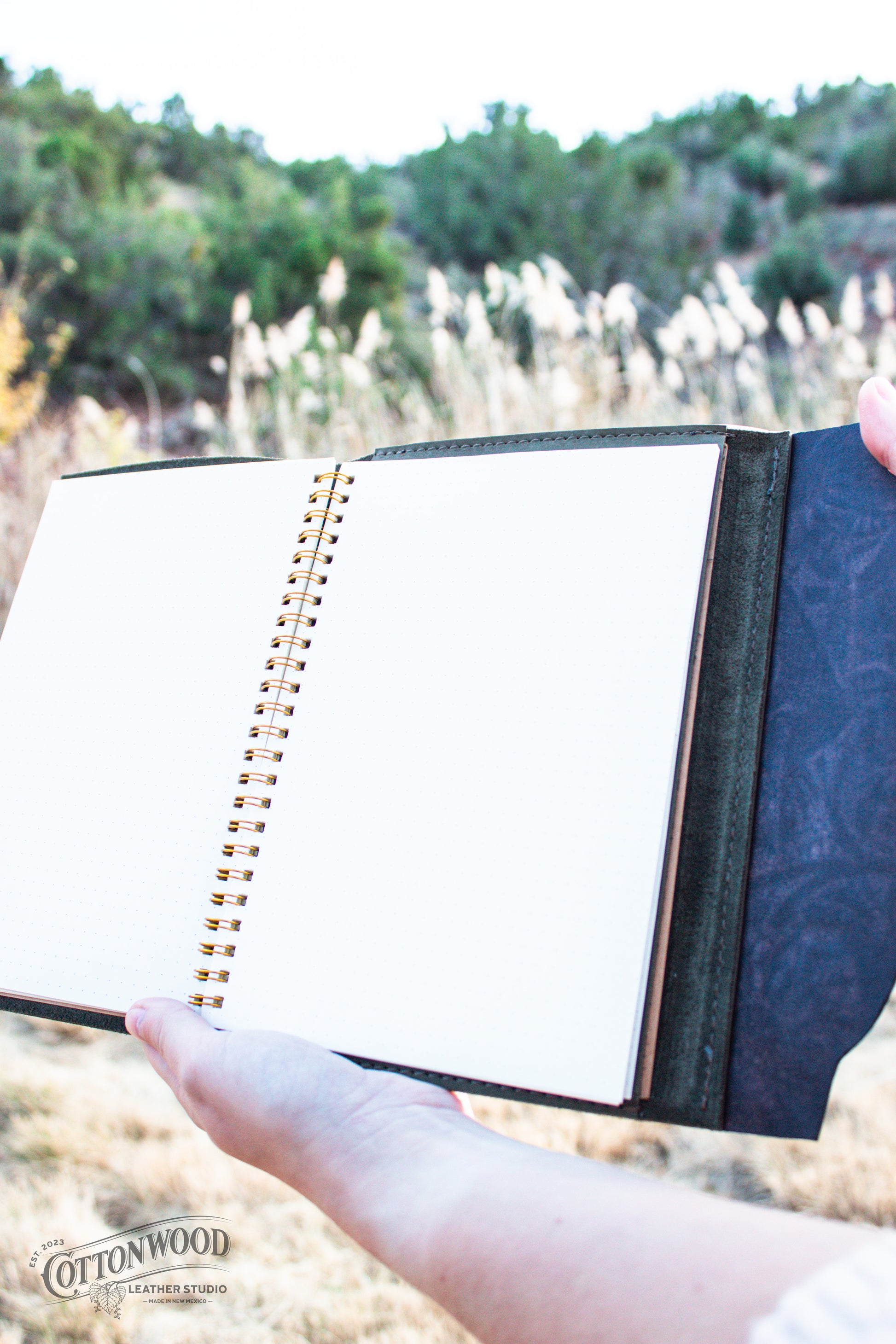 - A5 spiral notebook insert. Paper may be lined, dotted, or blank.