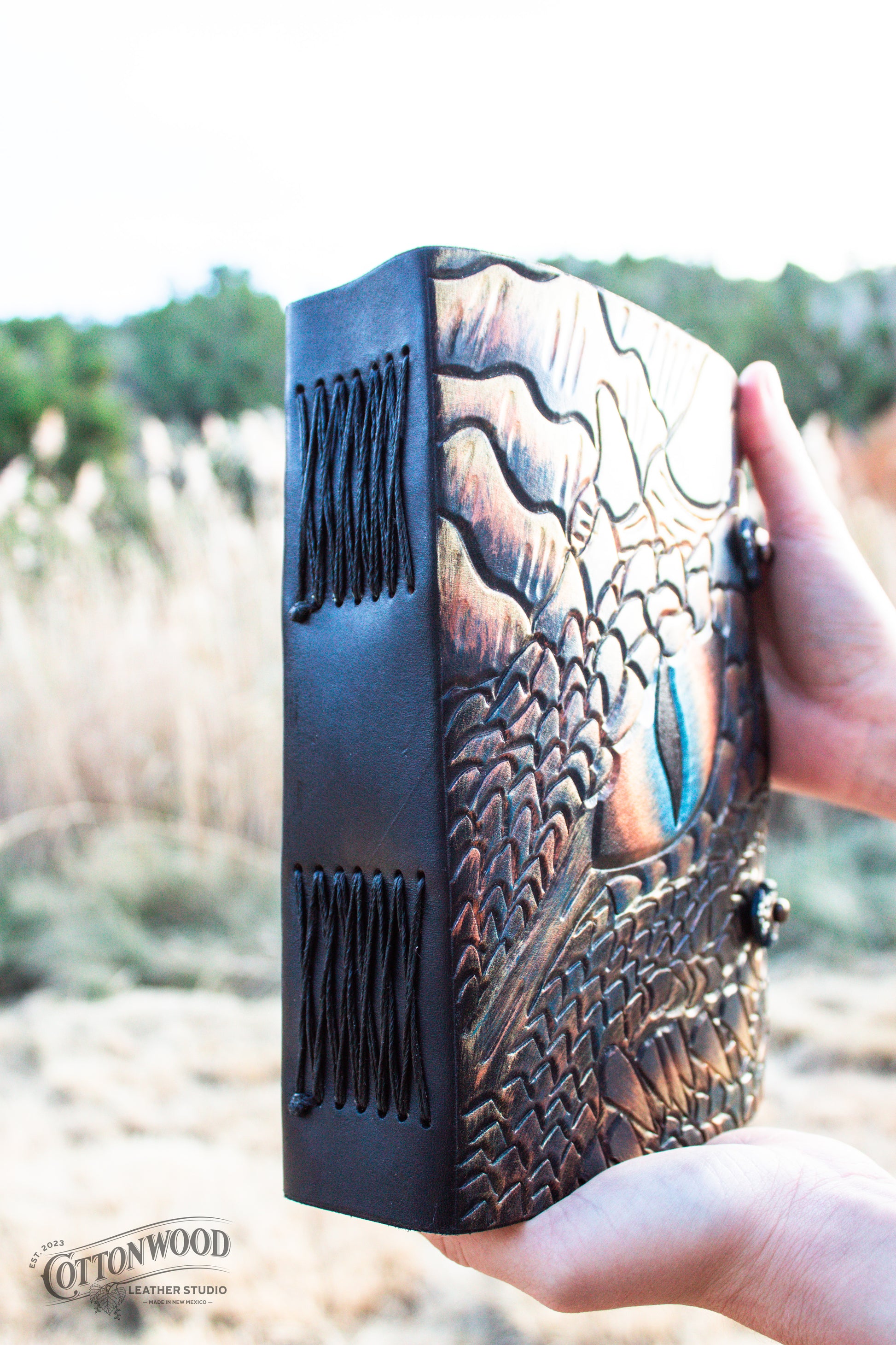 Step into a world filled with magic and wonder with this handcrafted, mythical dragon. Crafted from durable full grain leather and hand painted to perfection, it's designed to be your trusty companion for a lifetime of adventures. Let its pages guide you on your quest for creativity and inspiration.
