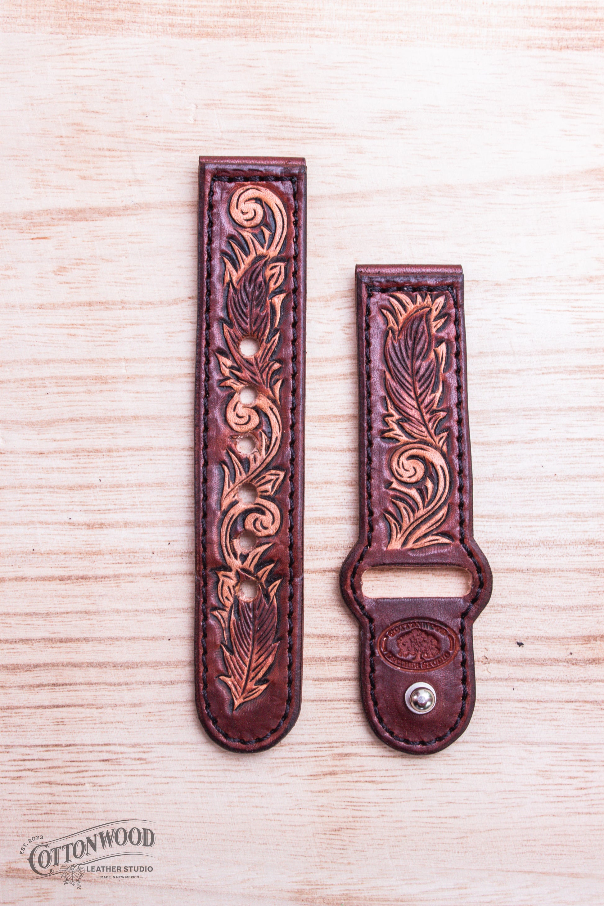 - Hand cut, tooled, and crafted.