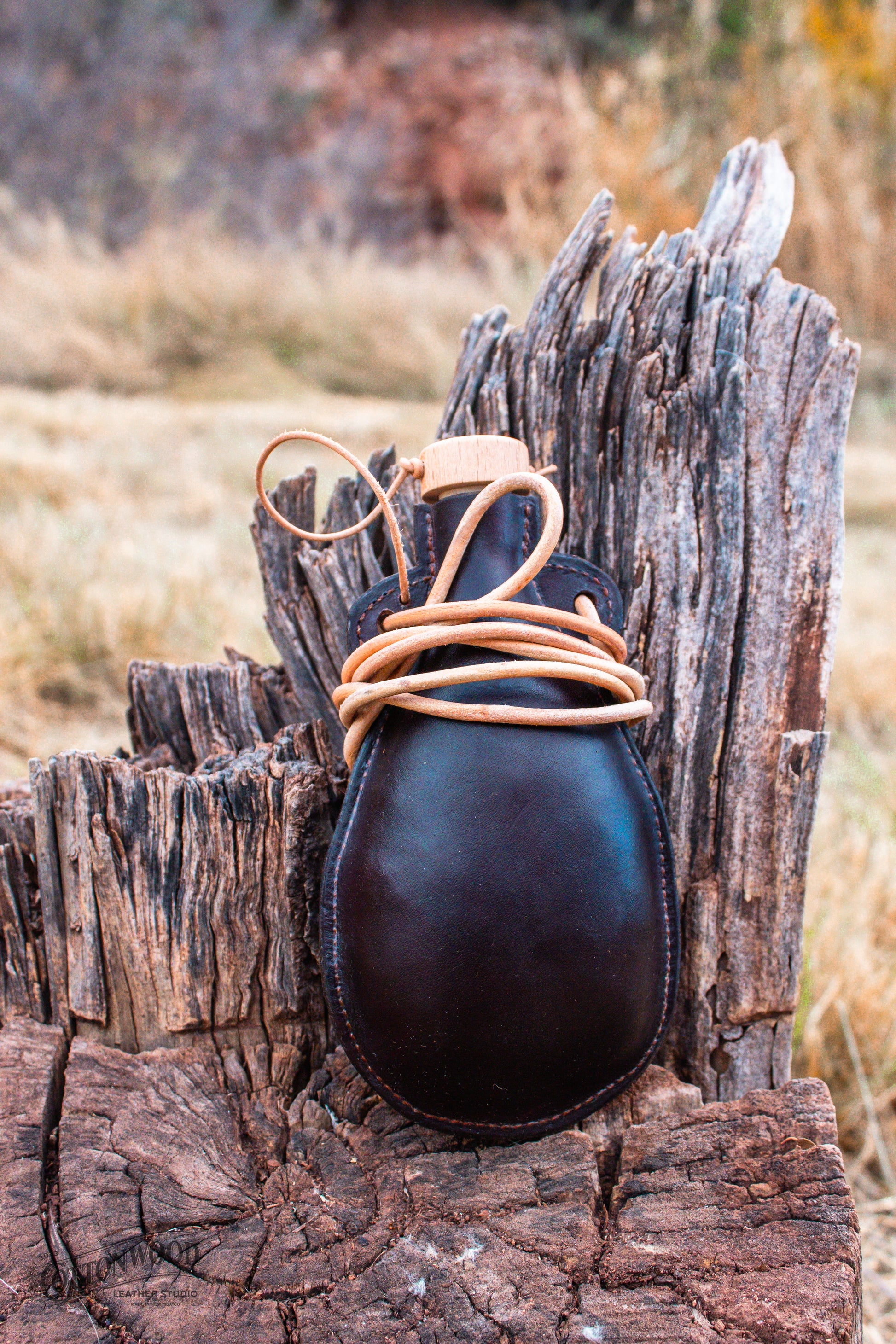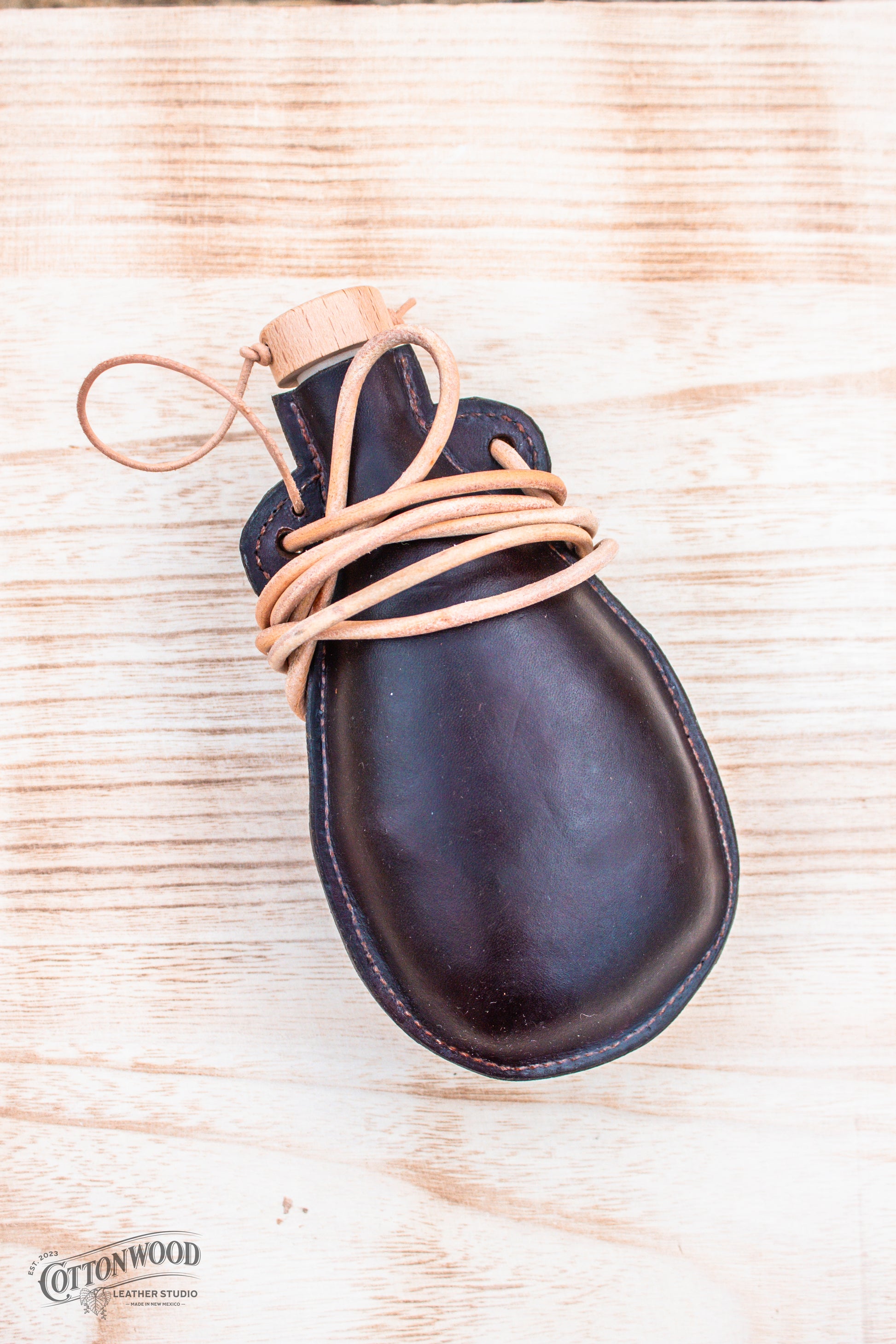 Crafted completely out of leather and finished with organic beeswax. Each vessel comes with a small bag of beeswax and a care sheet so you can keep it going for years to come.