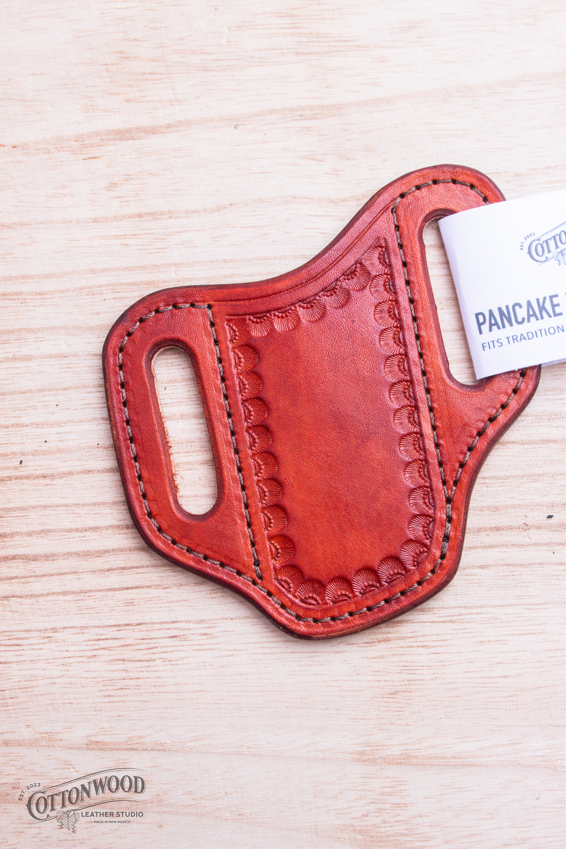 Handcrafted sheath perfect for your favorite pocket knife. Easily forms to any pocket knife. Knife pocket measures 1.75 inches X 3.5 inches, flat.