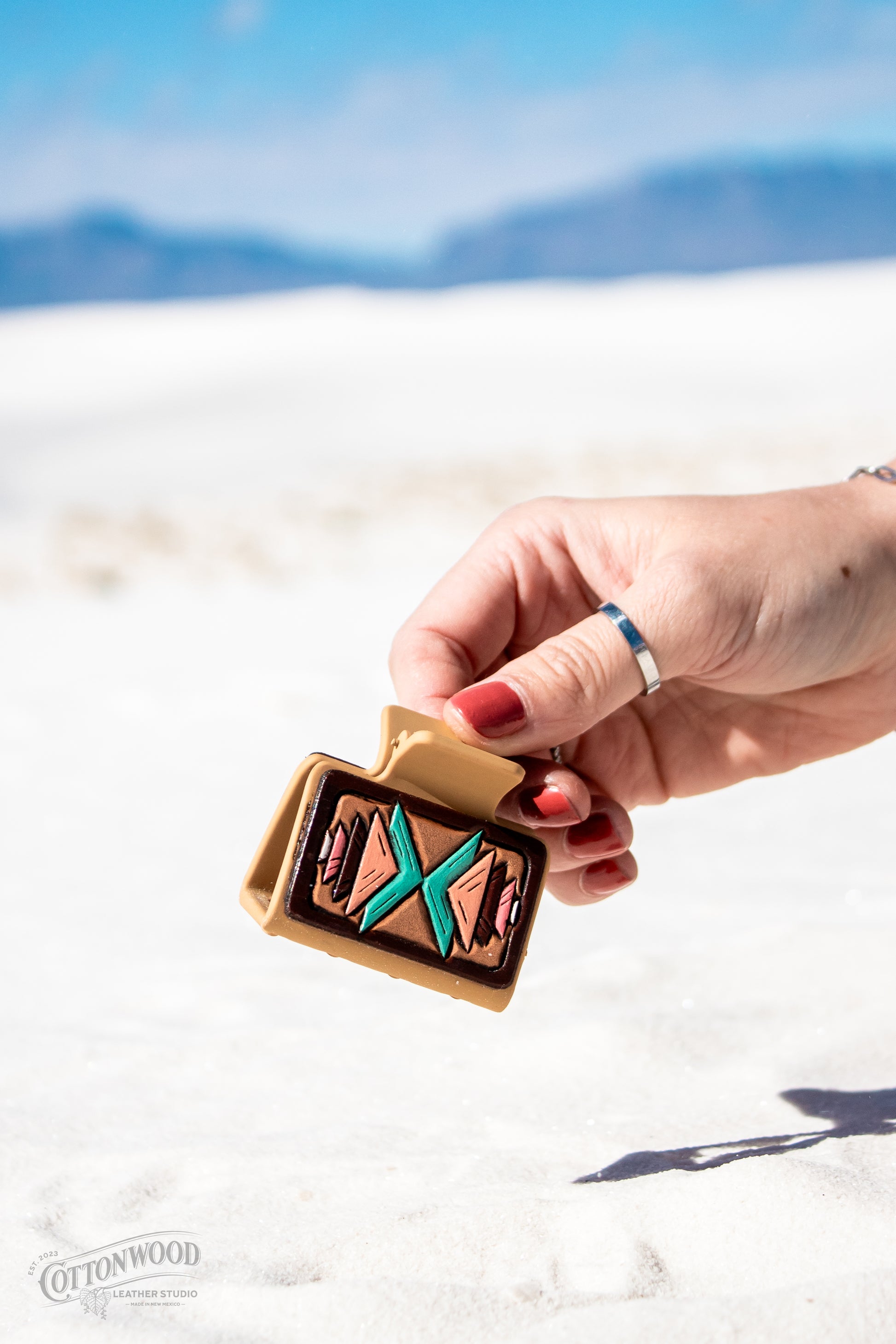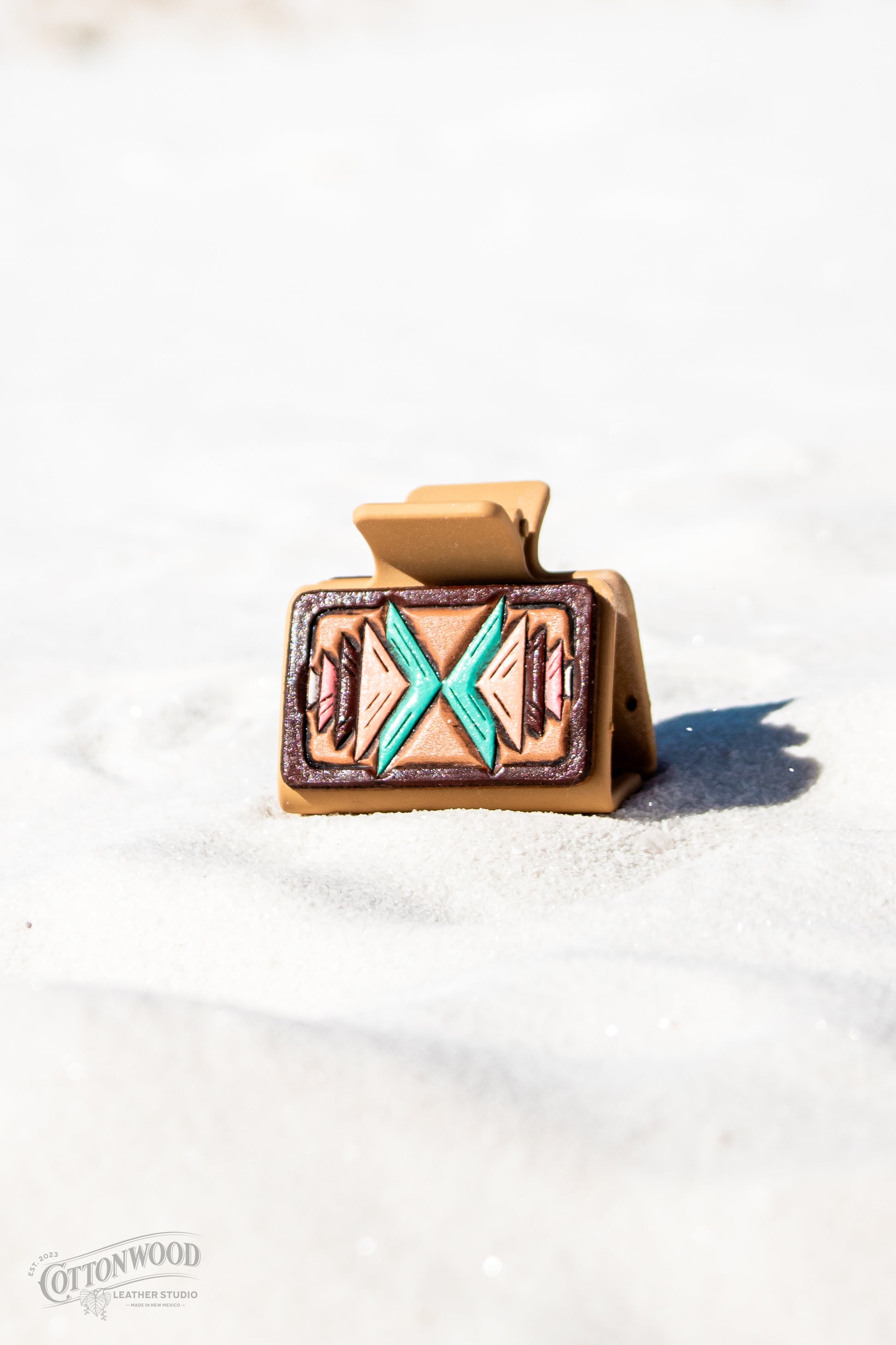 The perfect way to spice up any outfit! Pop on a hand tooled leather hair clip and you're sure to make an impression.