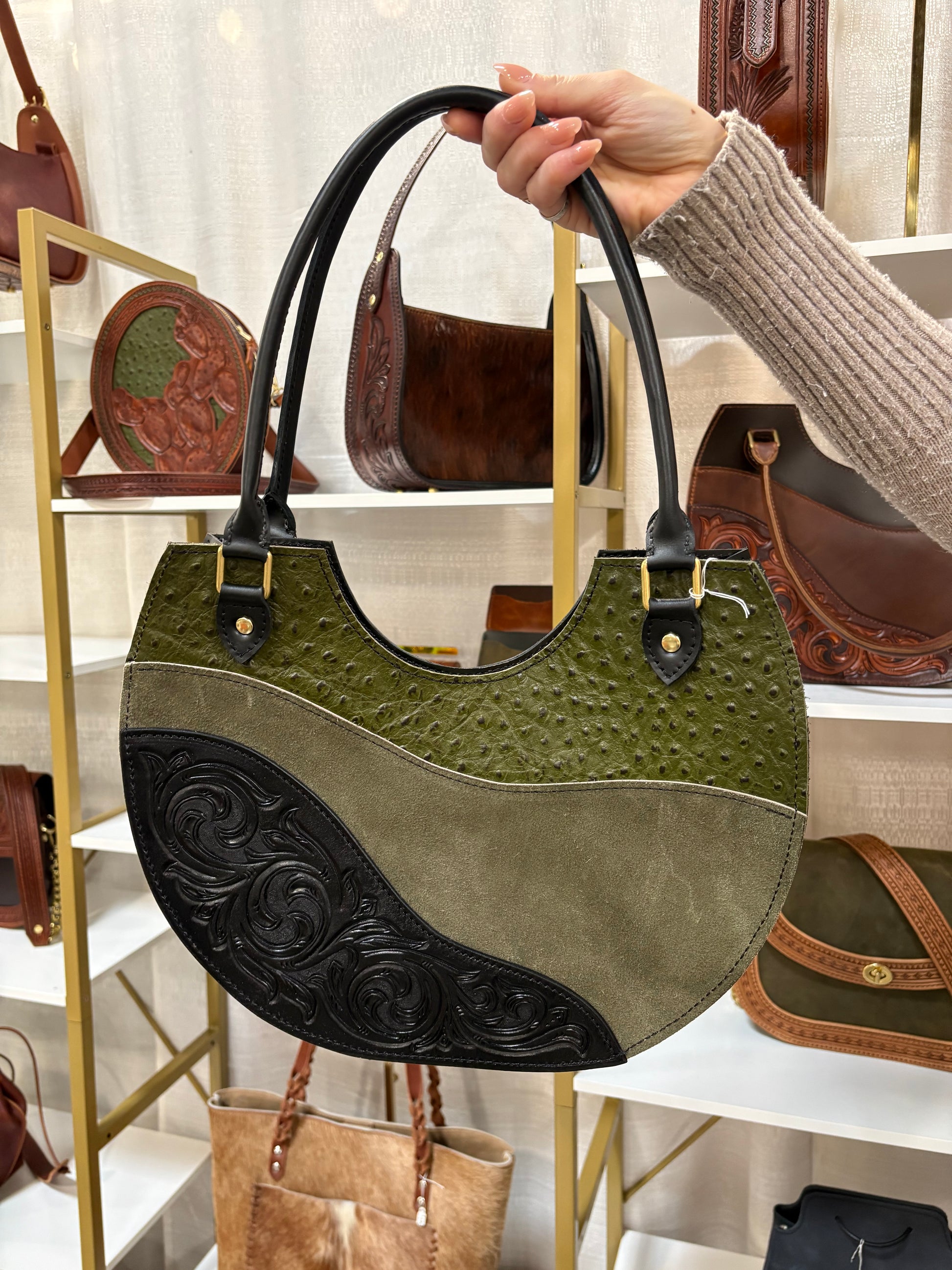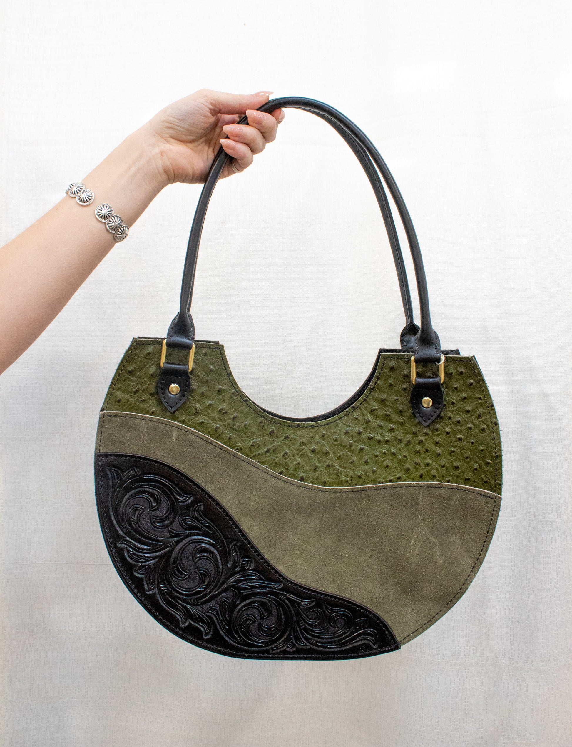 - Natural veg-tanned leather.