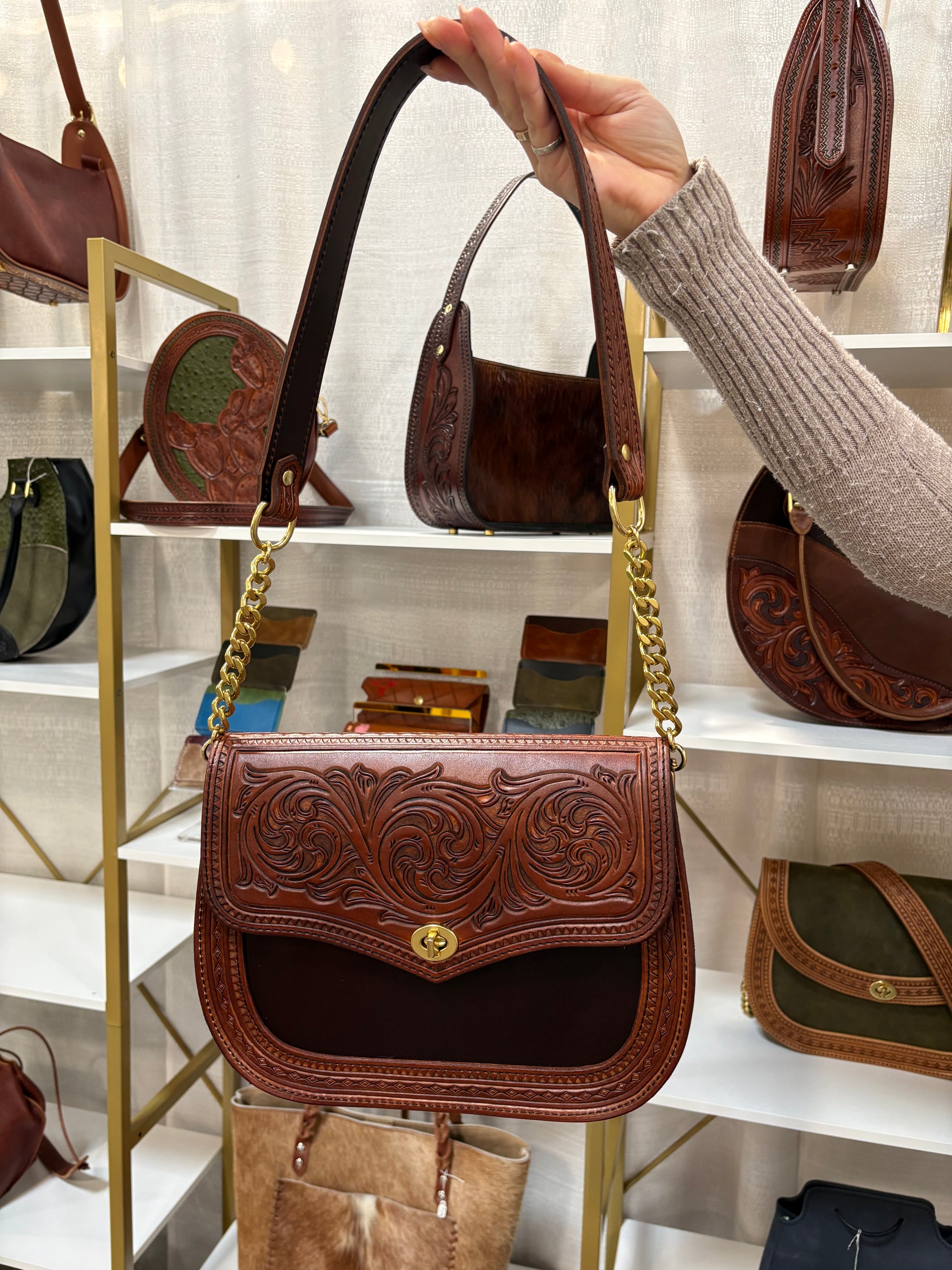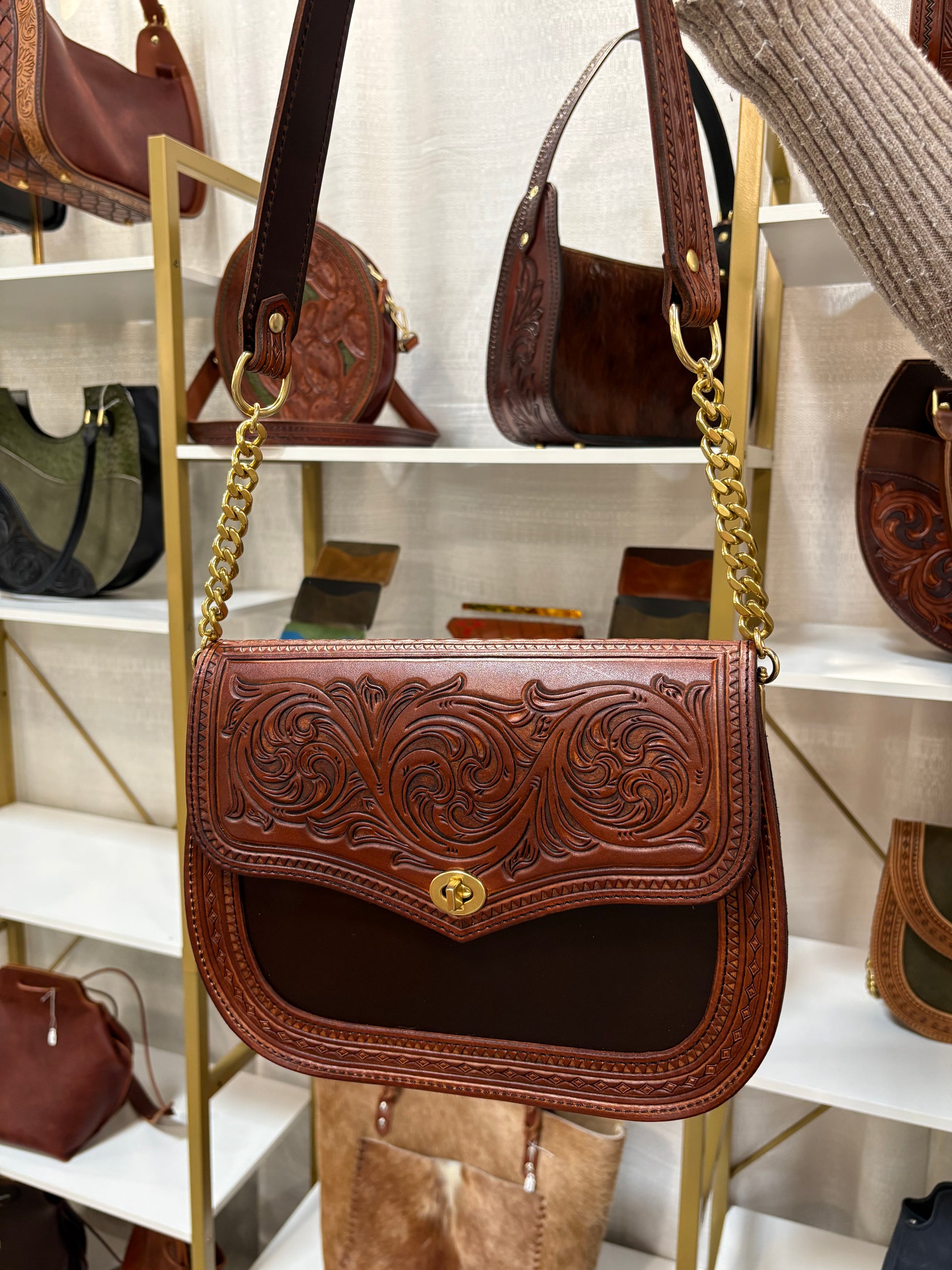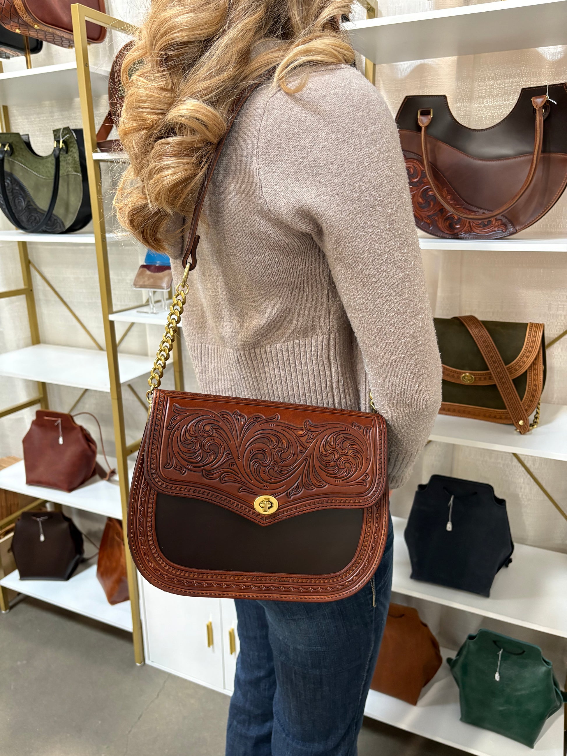 - Natural veg-tanned leather.